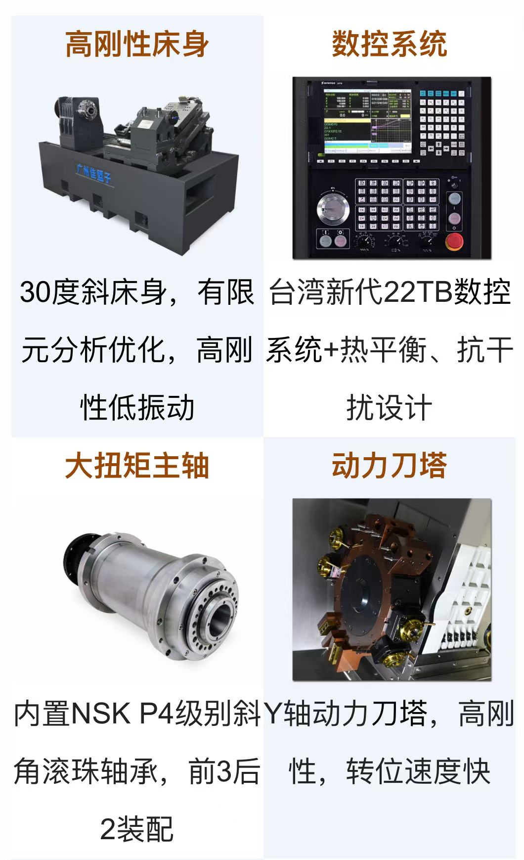 TX系列车铣复合中心 TX680LY 融合了强大的Y轴动力刀塔,拥有高速性能同时具备重载的线轨设计,为您的加工操作提供卓越的效率和灵活性。 该机型除具备数控车床上的功能还可以完成平面铣削、钻孔、攻丝、直槽、螺旋槽及铣齿等,还具有车削、铣削以及镗削等复合功能,一次成型加工多个工序,提高精准度。整机采用钣金框架结构,优质冷轧钢板,重量轻,强度高。产品加工件广泛应用于电子通讯、汽摩配件、机械制造、医疗器械、照明设备、航海、空调配件、水暖卫浴等行业。