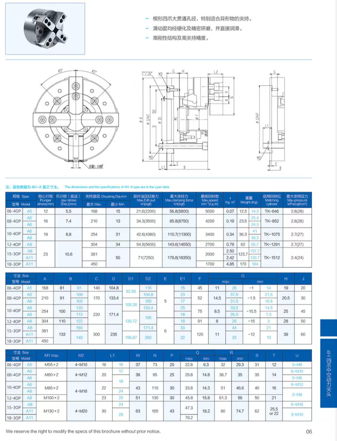 夹紧力大且稳定,液压系统可产生均匀且巨大的夹紧力,例如可达20kN,并能通过调节压力适应不同需求,确保夹持可靠,避免工件在加工中松动或变形。高精度与重复定位性能,能实现微米级的同心度和重复定位精度(如0.02mm以内),夹持力分布均匀,有效减少振动,提升加工表面质量,并降低刀具磨损。快速高效的操作,夹紧和松开动作迅速,装夹时间可缩短至4-6秒,显著减少工件换装时间,提高生产效率,并适用于自动化生产线集成。结构紧凑与空间优化,设计紧凑,占用空间小,便于在多面加工中灵活布局,提升机床空间利用率,同时减轻整体重量,适应高速加工需求。操作简单,劳动强度低;模块化设计支持多种工件快速适配,减少换型时间,并能与不同夹套组合使用,增强柔性化生产能力。