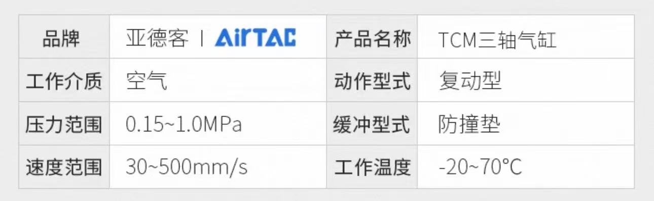 AirTac亚德客原装TCM50*10*20*30X40X50X60X80X90S三轴气缸精密