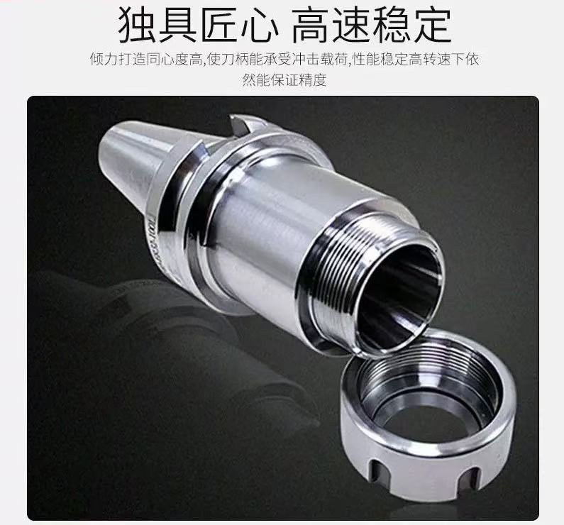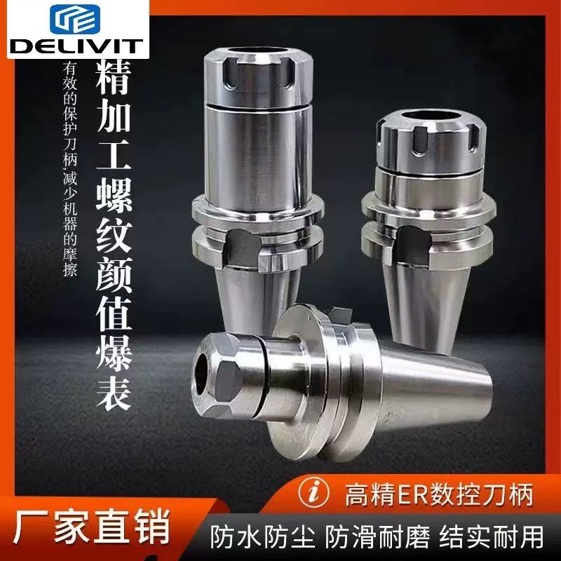 德立维特精密夹头刀柄或热涨刀柄能实现极高的夹持精度,重复定位精度可达2μm以内,径向跳动控制在5μm以内,适合微电子、模具等精密加工领域。 这种精度有助于保证加工一致性。液压夹头则通过液压系统实现均匀包络,提供强大的夹持力,同时具备减震效果,适用于高速加工,不同夹头类型适配多种刀具和加工需求,例如ER夹头刀柄兼容中小型刀具,常用于钻孔和铣削;TG夹头刀柄专为重型切削设计;组合夹头则提供灵活的多规格夹持解决方案,适合小批量生产,夹头如强力夹头和液压夹头具有良好的刚性,能传递高扭矩,同时抗污能力和防干涉性能较好,确保加工稳定性,尤其在高速或重载条件下表现突出